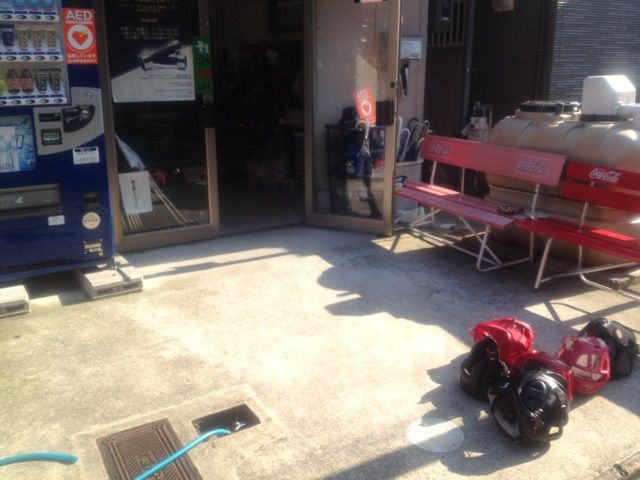 道具類を干そうと思って表に出したものの、あまりの暑さでヘッドギアを数個置いただけで諦めてしまった、の図。笑