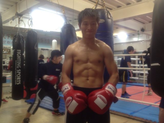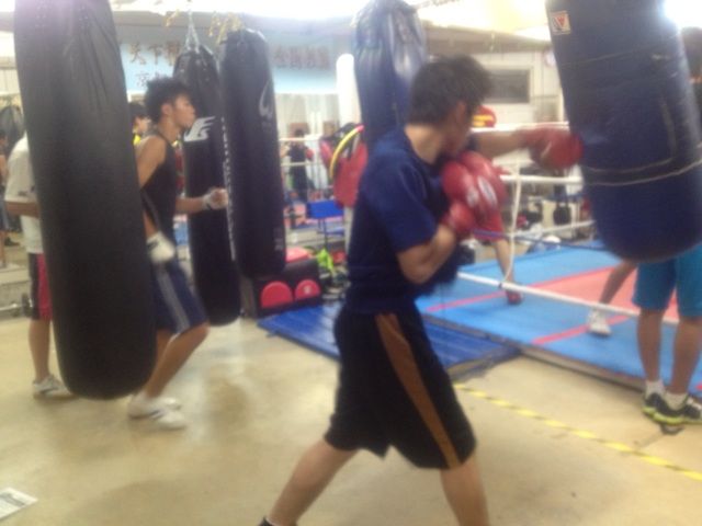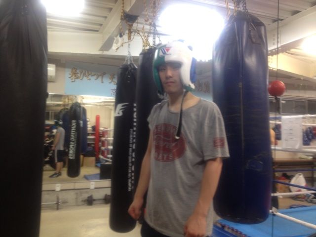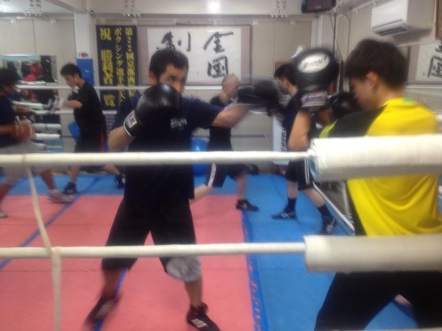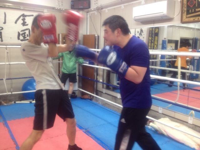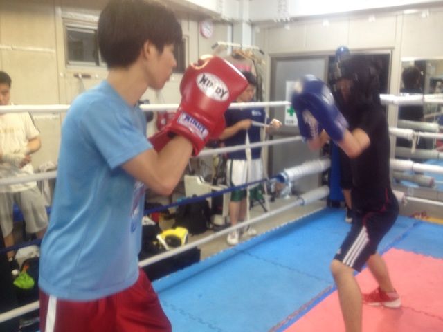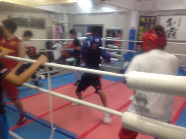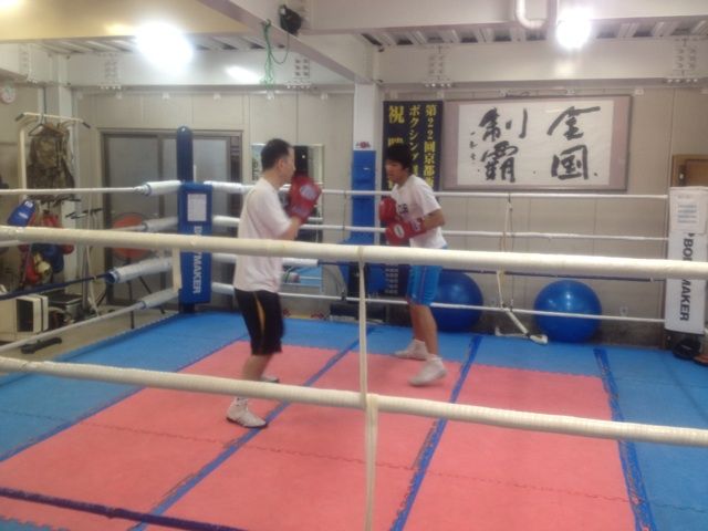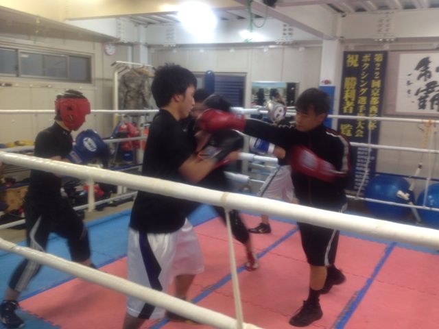 同志社大学ボクシング部からの出稽古な山下くんはユンくんとジャブだけスパーリング。
