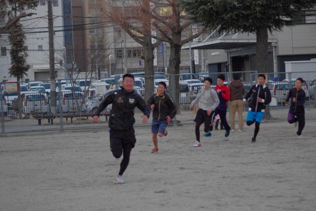 高校生達は近所の公園にロードワークへ。