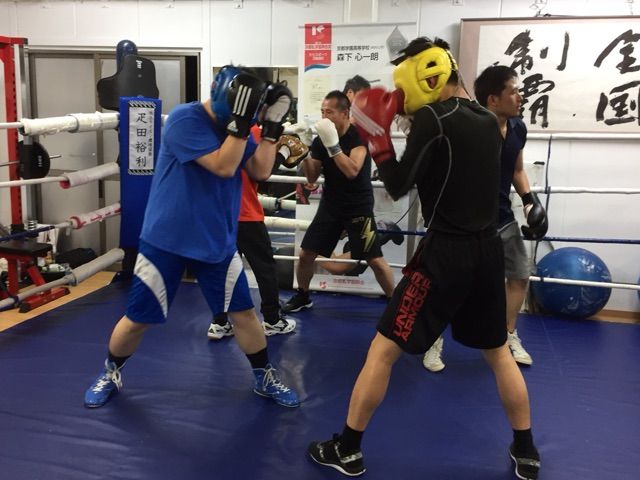 関大OBのF本さん(バッファ郎さんの後輩です)、けいとくんとマスボクシング!