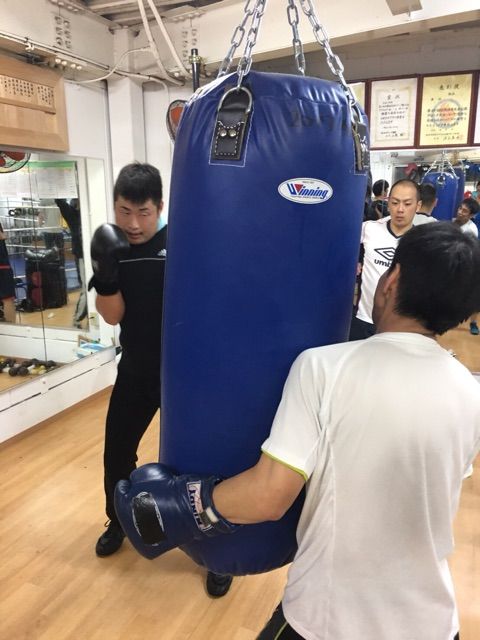 上田先生直伝のサンドバッグ連打に挑戦!
