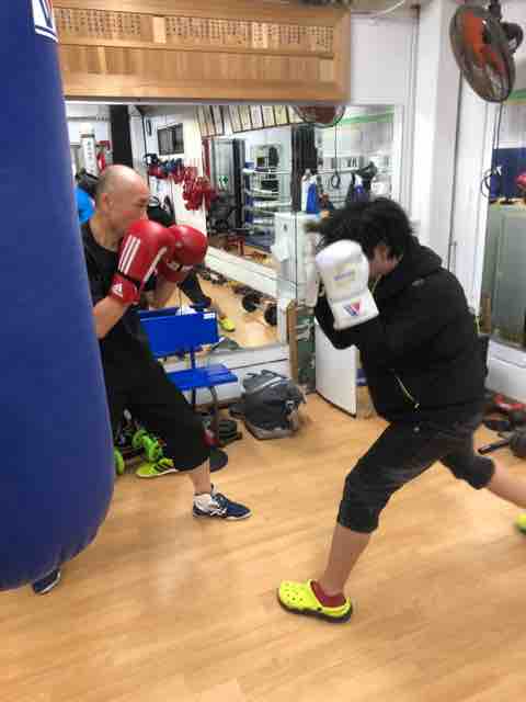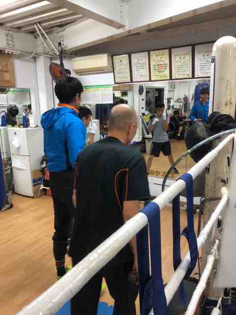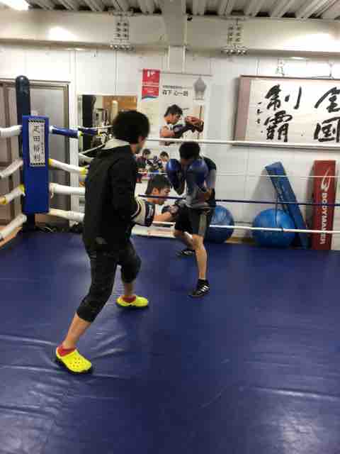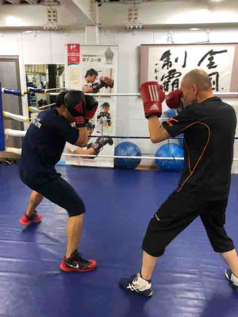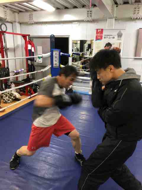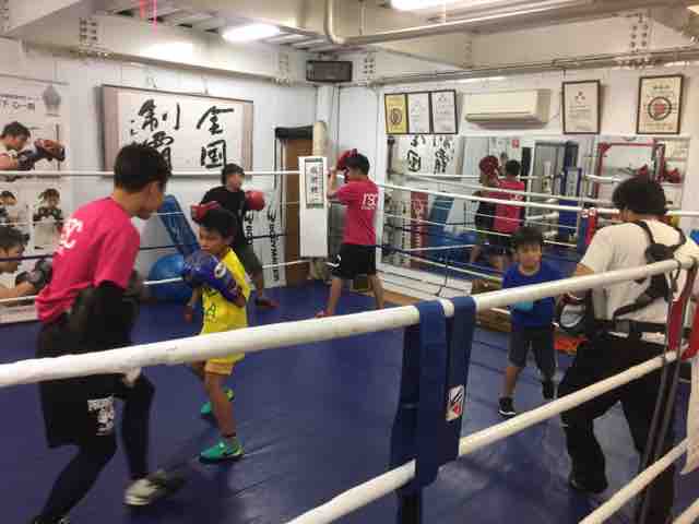 帰宅してそのままちびっこボクシングのレッスンに参加!